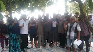 kegiatan sosialisasi itu dihadiri masyarakat yang didominasi para petani hampir sekitar 400 orang dari kalangan ibu ibu dan bapak bapak serta team rombongan dan Paslon Bupati