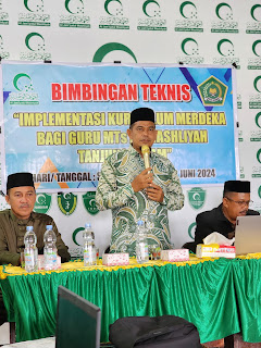 Dalam rangka meningkatkan kompetensi guru dilingkungan Perguruan Al Washliyah Tanjung Tiram, Kamad MTs Al Washliyah Tanjung Tiram Sofian Hamdan, S.Pd menggelar acara Bimbingan Teknis Implementasi Kurikulum Merdeka bagi guru-guru yang mengajar di MTs Al Washliyah Tanjung Tiram, Sabtu 01 Juni 2024. Bimtek yang digelar selama dua hari dimulai tanggal 1 dan 2 Juni 2024 dilaksanakan di gedung lantai dua Perguruan Al Washliyah Tanjung Tiram diikuti 32 orang peserta. Tampak hadir dalam kegiatan tersebut Ketua PD Al Washliyah Batu Bara yang juga Balon Bupati Batu Bara H Al Asari, S.Ag., M.Si didampingi sekretaris Muhammad Syafri, SH., Kakan Kemenag Batu Bara yang dihadiri oleh Kasi Pendis Kemenag Batu Bara H Sahari Mauludin, M.Pd., Ketua Majelis Kader PW Al Washliyah Sumatera Utara Rahmad Jami, M.Pd., Kamad MTs Al Washliyah Tanjung Tiram Sofian Hamdan, S.Pd dan para tenaga pendidik dan kependidikan MTs Al Washliyah Tanjung Tiram. Acara diawali dengan pembacaan ayat suci Al Quran dan dila...
